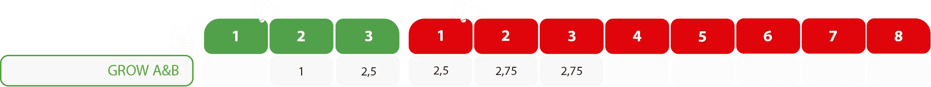 Es un fertilizante de calidad superior. Está especialmente diseñado para aplicarlo durante toda la fase de crecimiento. Está formulado por dos componentes, Grow A y Grow B, formando un único producto. Al usar nutrientes muy finos, limpios de nitratos y limpios de clóricos se obtiene una absorción óptima. Se puede usar para todo tipo de cultivos y está especialmente recomendado para sistemas de hidroponía.